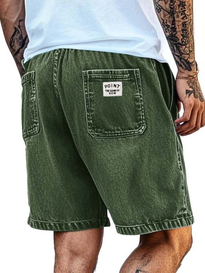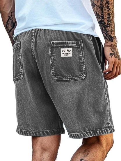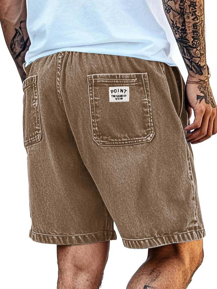 Men's Fashion Retro Distressed Pocket Embroidered Logo Shorts