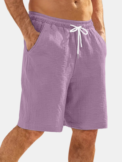 Men's Casual Hawaiian Bubble Wrinkle Comfortable Solid Color Beach Shorts