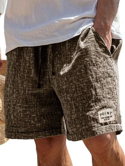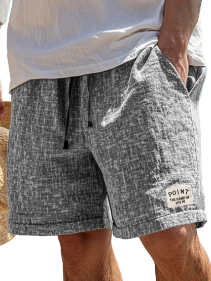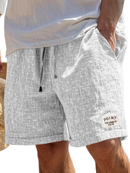 Men's Fashion Casual Hemp Fabric Pocket Embroidered Logo Shorts